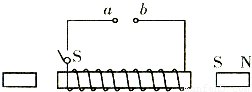 如图所示,通电螺线管右面是一根条形磁铁,左面是一根软铁棒,a、b分别接电池的两极,当开关S闭合时,下列说法中正确的是( )