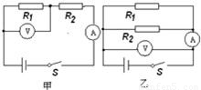 如图所示电路,电源电压保持不变.在甲图中,闭合开关S,电压表示数为4V,电流表示数为0.4A;乙图中,闭合开关S,电压表示数为6V.求: