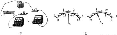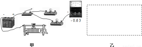在下图甲中,闭合开关后,通过灯泡L
