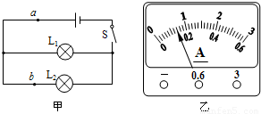 在探究并联电路电流特点时,小兰连接了图甲所示的电路.当她将电流表依次接入a、b两点时,发现电流表指针偏转情况相同,如图乙所示.则电路中通过灯泡L
