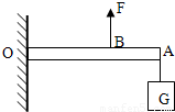 如图所示,轻质杠杆OA可绕O点转动,OA=0.3cm,OB=0.2cm.A点处挂一个重量为20N的物体G,B点处加一个竖直向上的力F,杠杆在水平位置平衡,则力F大小为多少?
