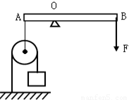已知G=100N,AO=10cm,AB=30cm,滑轮重及摩擦不计,求作用在B端的力多大时杠杆在水平位置平衡?