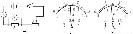 小明按图甲所示的电路图连接实验电路,测量电阻R的阻值.闭合开关S,调节滑动变阻器的滑片P后,观察到电压表和电流表的示数分别如图乙、丙所示,则电阻R的阻值为