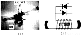 小明制作了如图(a)所示的电磁翘翘板参加学校的科技节活动.该电磁翘翘板是在两端封闭的透明塑料管中放有一块磁性很强的磁铁,塑料管外绕有金属丝作为线圈,在线圈两端并联两只发光二极管,其电路如图(b)所示.二极管具有单向导电性,电流只能从二极管的正极流入,负极流出.演示时,将塑料管上下翘动,磁铁便在线圈中左右移动,相当于线圈导体在磁场中做切割磁感线运动,这时会看见两只发光二极管轮流发光.