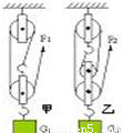 如图,两个滑轮组由每个质量相同的滑轮组成.用它们分别将重物G