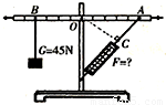 图中OA=25cm,OB=20cm,OC=20cm,AC=15cm,杠杆水平平衡,测力计示数为