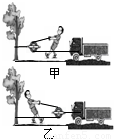 一辆车不小心陷进了泥潭中,按如图所示的甲、乙两种方法安装滑轮,均可将车从泥潭中拉出.如果车受到的阻力为80N,则甲图中人拉动车的拉力至少为