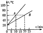 分别用两个相同的电热器,同时给质量和温度都相同的A、B两种液体加热,它们温度随时间变化的图象如图所示,由图可以看出
