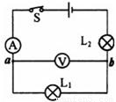 如图所示,闭合开关,两灯都亮不起来,电流表的指针几乎不动,而电压表指针由明显偏转,该电路的故障可能是( )