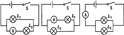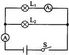 小明同学按图所示的电路图连好电路,闭合开关S后,观察电流表读出如下的示数,A