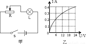 有一种亮度可以调节的小台灯,其电路如图甲.电源电压为24Ⅴ,灯泡L的额定电压为24Ⅴ,通过灯泡L的电流跟其两端电压的关系如图乙.当灯泡正常发光时,灯丝的电阻为