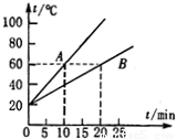小明在研究物体吸收的热量与哪些因素有关时,他在两只相同的杯子里,装入质量相等的A、B两种不同的液体,用两个相同的加热器给它们加热,并分别用温度计测出两种液体在不同时间的温度,画出它们温度随时间变化的图象,如图所示.根据此图象可知( )