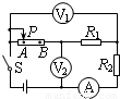 2,闭合开关S.当滑片P从A点向B点移动的过程中,两块电压表V