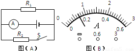1的阻值为15欧.闭合电键S,电流表的示数如图(B)所示.求:
