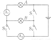 如图所示电路中,要使灯泡A,B与电源组成串联电路,应闭合开关