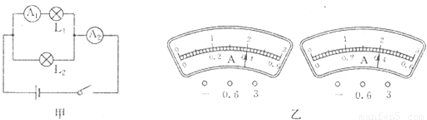 在如图甲所示的电路中,两只电流表的示数分别如题图乙所示,那么A