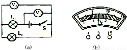 在如图(a)所示电路中,当闭合开关后,两个电压表指针偏转均如图(b)所示,则电灯L
