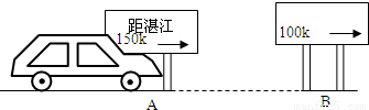 如图所示,轿车从某地往湛江方向行驶.当到达A地时,车内的钟表显示为10﹕25;到达B地时,钟表显示为10﹕55.