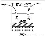 A.当海水下降时,阀门K