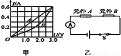 有两个电路元件A和B,流过元件的电流与其两端电压的关系如图(甲)所示,如图(乙)所示,把它们串联在电路中,闭合开关S,这时电流表的示数为0.4A,则电源电压和元件B的电功率分别是( )