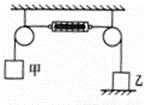 甲物体重6N,乙物体重10N,弹簧秤重力及摩擦均不计.则当甲、乙两物体静止时,弹簧秤的读数为