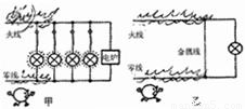 如图所示的甲、乙两个电路中,开关闭合后,电线燃烧起来.分析产生现象的原因: