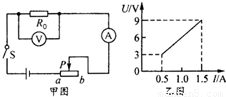 如图甲的电路中,电源电压保持不变,闭合开关后,滑片P由b端滑到a端,电压表示数与电流表示数的变化关系如图乙,则可判断电源电压是