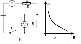 某物理科技小组设计了汽车有害尾气排放检测电路如图甲所示,R为气敏电阻,其阻值随有害尾气浓度B变化的曲线如图乙所示,R
