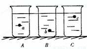 三个体积相同而不同材料制成的实心球体,放入同一种液体中,最后静止时,如图所示.则它们所受浮力的大小关系是( )