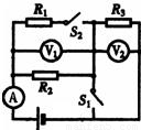 3=40Ω),一个表盘数字已经模糊(但刻度清晰)的电压表,两个开关S