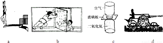 有关;c图中,上瓶内装有空气,下瓶内装有红棕色的二氧化氮气体,将上下两瓶间的玻璃板抽掉,过一段时间后,两瓶气体混合在一起,颜色变均匀.这个现象说明