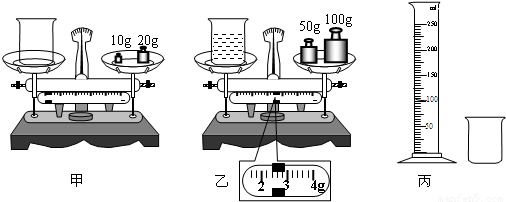 (2)他按甲、乙、丙的顺序进行实验.根据图中数据可知:杯中牛奶的质量为______g;牛奶密度为______kg/m