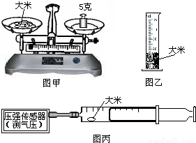 | 注射器内空气压强 | 注射器内空气和大米的总体积 | 注射器内空气体积 | |