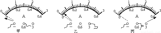 电流表指针摆动分别出现了如图甲、乙、丙所示的三种情况.请分析他们在电流表的使用上分别存在什么问题,并写在下面的横线上.