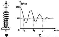 如图所示,将一根弹簧和一只质量为1kg的金属球(球上有一直小孔)套在铁架台的金属杆AB上面.现将小球提到B端后松手,小球的高度随时间变化的情况如图乙所示.