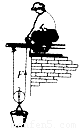 如图所示,工人利用动滑轮在10s内将重为100N的重物(包括桶)沿竖直方向匀速向上提升了5m.若该动滑轮重10N,忽略绳与滑轮之间的摩擦,不计空气阻力,则下列说法正确的是( )