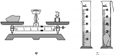 用天平和量筒可以测定矿石的密度.把矿石放在调节好的托盘天平的左盘中,当天平平衡时,右盘中的砝码以及游码在标尺上的位置如图甲所示.矿石的质量是______g;矿石放入量筒前、后,量筒中水面位置如图乙所示.矿石的体积是______cm