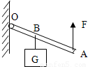 如图所示,OA是一根可绕O点自由转动的轻质杠杆,杠杆B点悬挂一重物G,在A端始终受到一个竖直向上的拉力F,使杆子慢慢向上转动,直至水平,在此过程中,力F的大小将 ( )