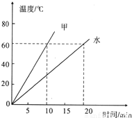 用两个相同的电热器给质量相同的物质甲和水加热,它们的温度随加热时间的变化关系如图所示,据此判断物质甲的比热容为( )