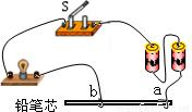 如图所示电路,导线a的一端固定连接在铅笔芯上,当导线b的一端在铅笔芯上左右移动时,灯泡亮暗会发生变化这个实验说明铅笔芯是