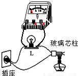 在研究物质的导电性时,采用如图所示的实验电路,用酒精灯对着取自白炽灯的玻璃芯柱加热,灯泡L会慢慢亮起来,对此,以下叙述正确的是( )