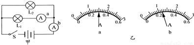 如甲图电路,当开关s闭合后,电流表的指针偏转如乙图所示,其中a电流表测量的是通过