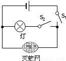 2断开时,只有灭蚊网通电起到灭蚊作用;当开关S