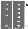 “频闪摄影”是研究物体运动时常用的一种实验方法.摄影在暗室中进行,闪光灯每隔一定的时间闪亮一次,底片就记录下这时物体的位置.右图是两个质量相同小球下落时的频闪照片,根据照片记录的小球位置,从位置a到位置b时,