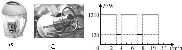 小明的妈妈为了改善早餐的营养,买了一台全自动豆浆机,如图甲所示.图乙所示是豆浆机的主要结构:中间部位是一个带动刀头的电动机,用来将原料进行粉碎打浆;外部是一个金属圆环形状的电热管,负责对液体加热煮沸.下表是这个豆浆机的主要技术参数;图所示是豆浆机正常工作做一次豆浆的过程中电热管和电动机交替工作的“P-t”图象.