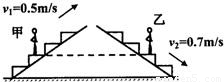 甲站在0.5m/s匀速上行的自动扶梯上,乙站在0.7m/s匀速下行的自动扶梯上.甲、乙两人质量相等,甲上行中动能