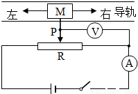 小丽设计了如图所示的简易电子距离测量仪,R是一根粗细均匀的电阻丝,其每厘米长的电阻为0.5Ω,电路各部分均接触良好.物体M只能在导轨上做直线运动,并带动与之相连的金属滑片P移动,电压表示数可反映物体M移动的距离.开始测量前,将金属滑片P置于电阻丝中点,此时电压表和电流表示数分别为1.5V和0.2A.由此可知( )