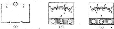小丽用有0~0.6A和0~3A两个量程的电流表,研究图(a)所示电路中通过a、b两点的电流大小关系(电流大小相等).电流表接在a点时,指针位置如图(b),电流表接在b点时,指针位置如图(c).