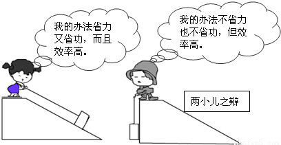 如图所示,两小儿之辩,关于机械省力,省功以及机械效率的辩论,你支持哪一方的说法?不支持另外一方的原因是什么?