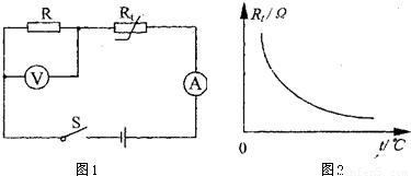 l是一个半导体材料制成的热敏电阻,其阻值随温度变化的曲线如图2所示,当开关闭合且电阻R